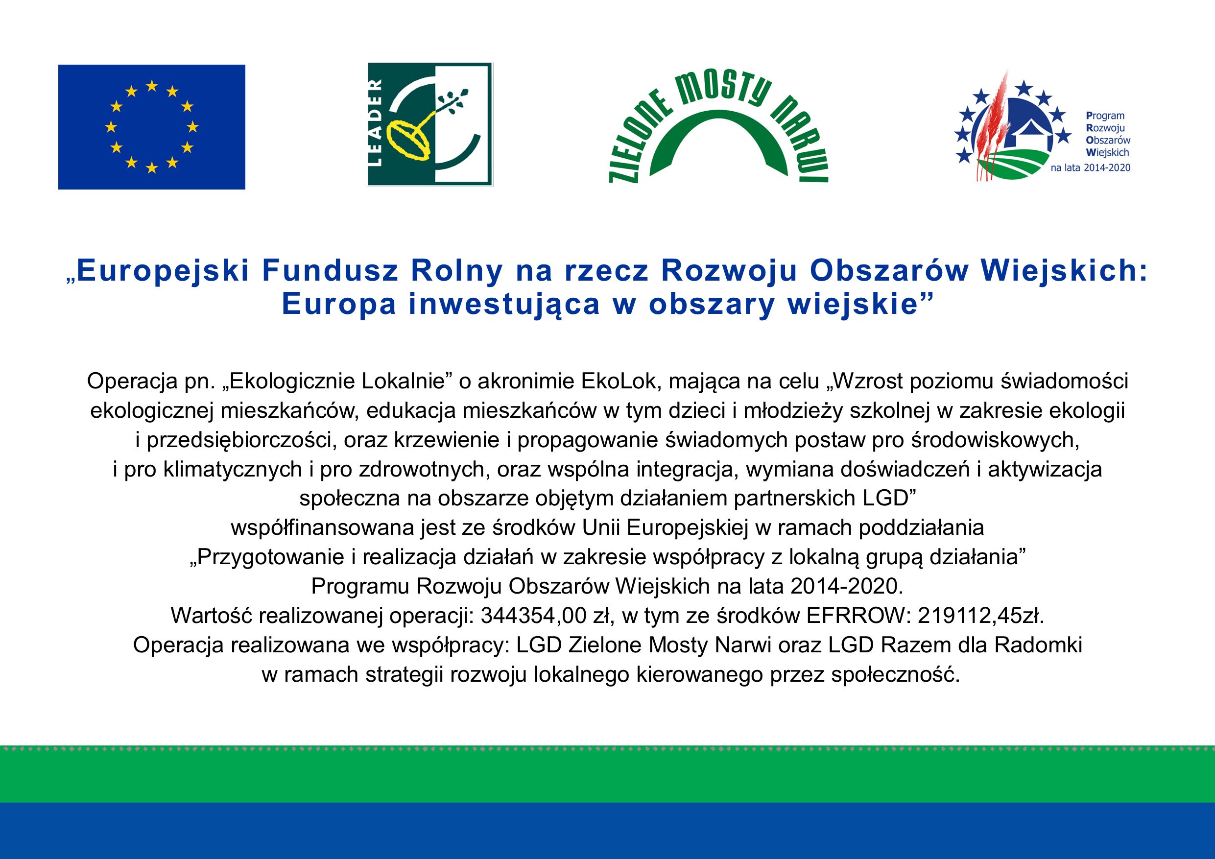 Lokalna Grupa Działania Zielone Mosty Narwi zaprasza do udziału w konkursie plastycznym o tematyce ekologicznej pt. „Śmieci segreguję – ZIEMIĘ ratuję”, który organizowany jest w ramach projektu współpracy „Ekologicznie Lokalnie".