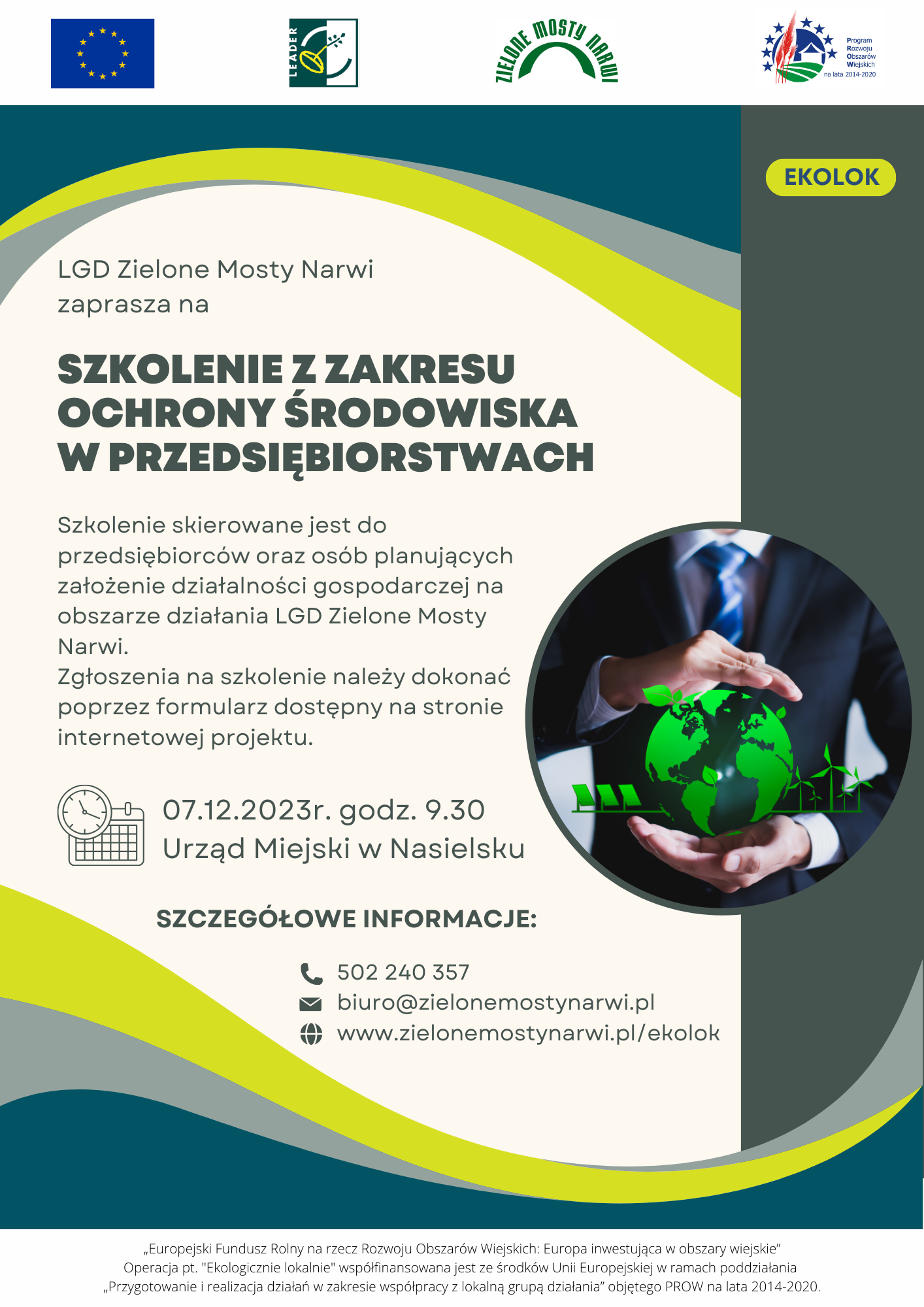 Lokalna Grupa Działania Zielone Mosty Narwi zaprasza na szkolenie z zakresu ochrony środowiska w przedsiębiorstwach - realizowane w ramach projektu współpracy "Ekologicznie Lokalnie".