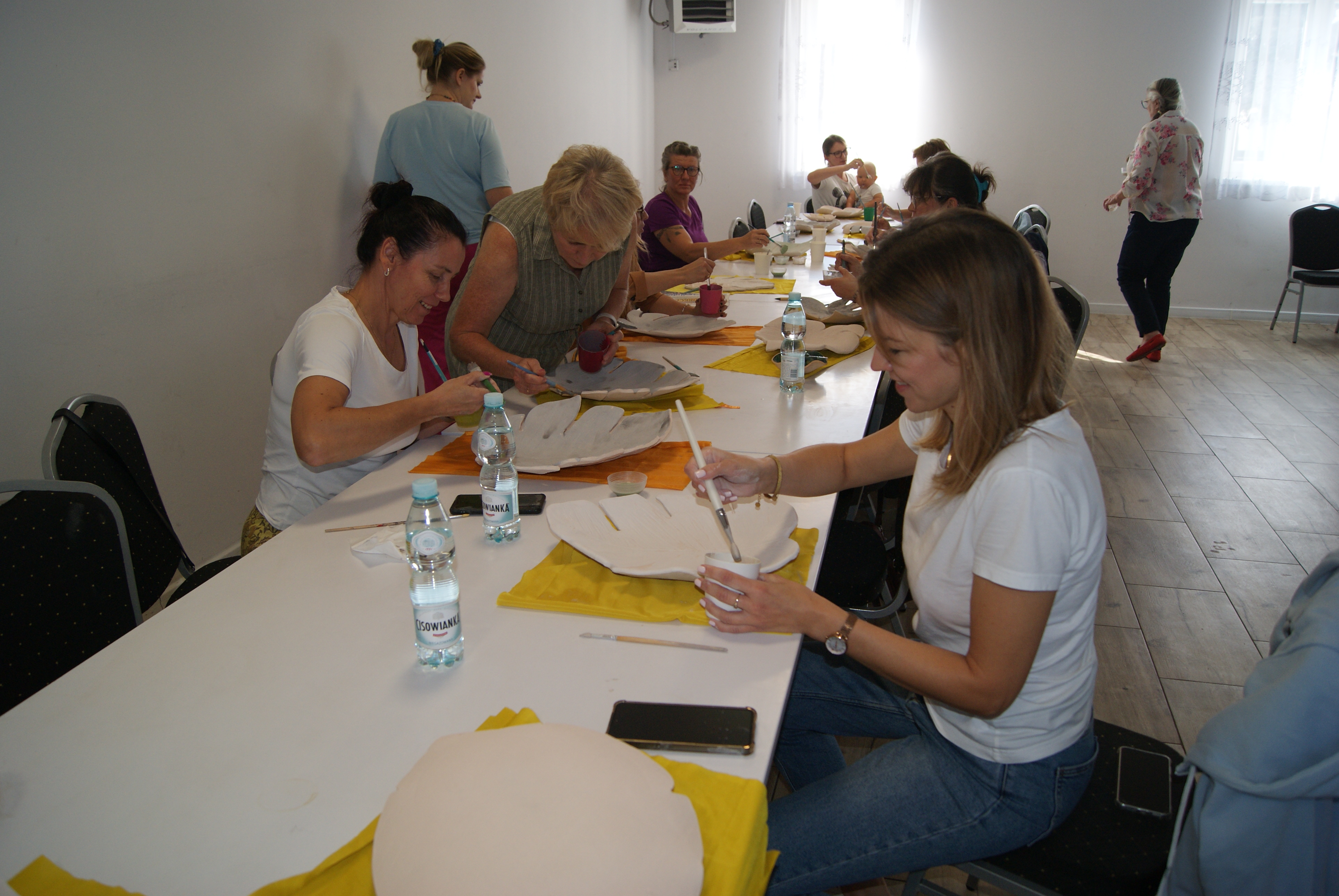 W remizie OSP w Glinicach Wielkich uczestniczki projektu pn. "Kwiat rozwoju" wróciły do swoich wyjątkowych prac – talerzy w kształcie liścia monstery, które powstały podczas pierwszych warsztatów. Zanim jednak chwyciłyśmy za pędzle i szkliwa, rozmawiałyśmy o naszych potrzebach, które często odkładamy na bok w codziennym biegu. To był ważny moment zatrzymania się i spojrzenia w głąb siebie.